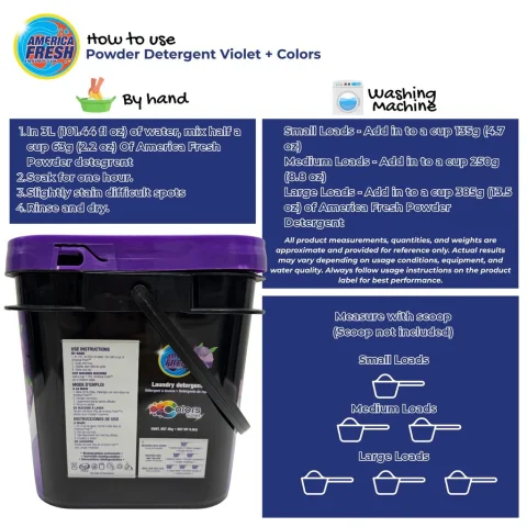 Detergent with cleaning agents that help remove mud, grass, or clay stains | Formulated to care for colored garments | Prevents color transfer between fabrics during washing | Offers protection against fading to preserve original shades for a longer time | Provides a soft texture in garments after washing | Includes light intensity violet aroma | Suitable for daily clothing that requires effective cleaning without compromising colors | Made in Jamaica.