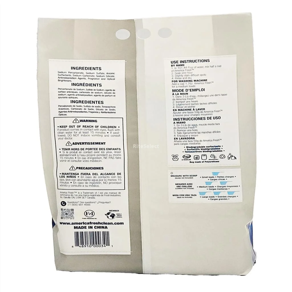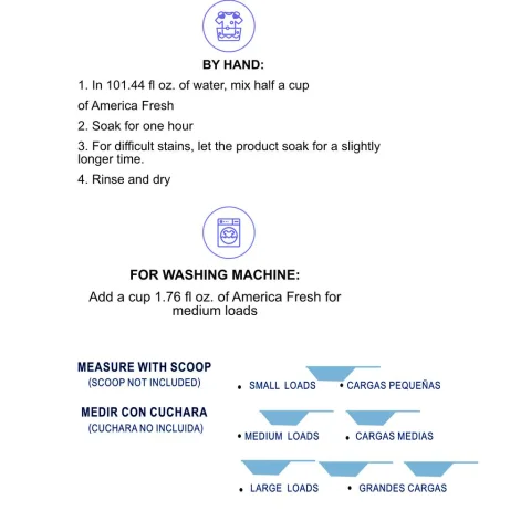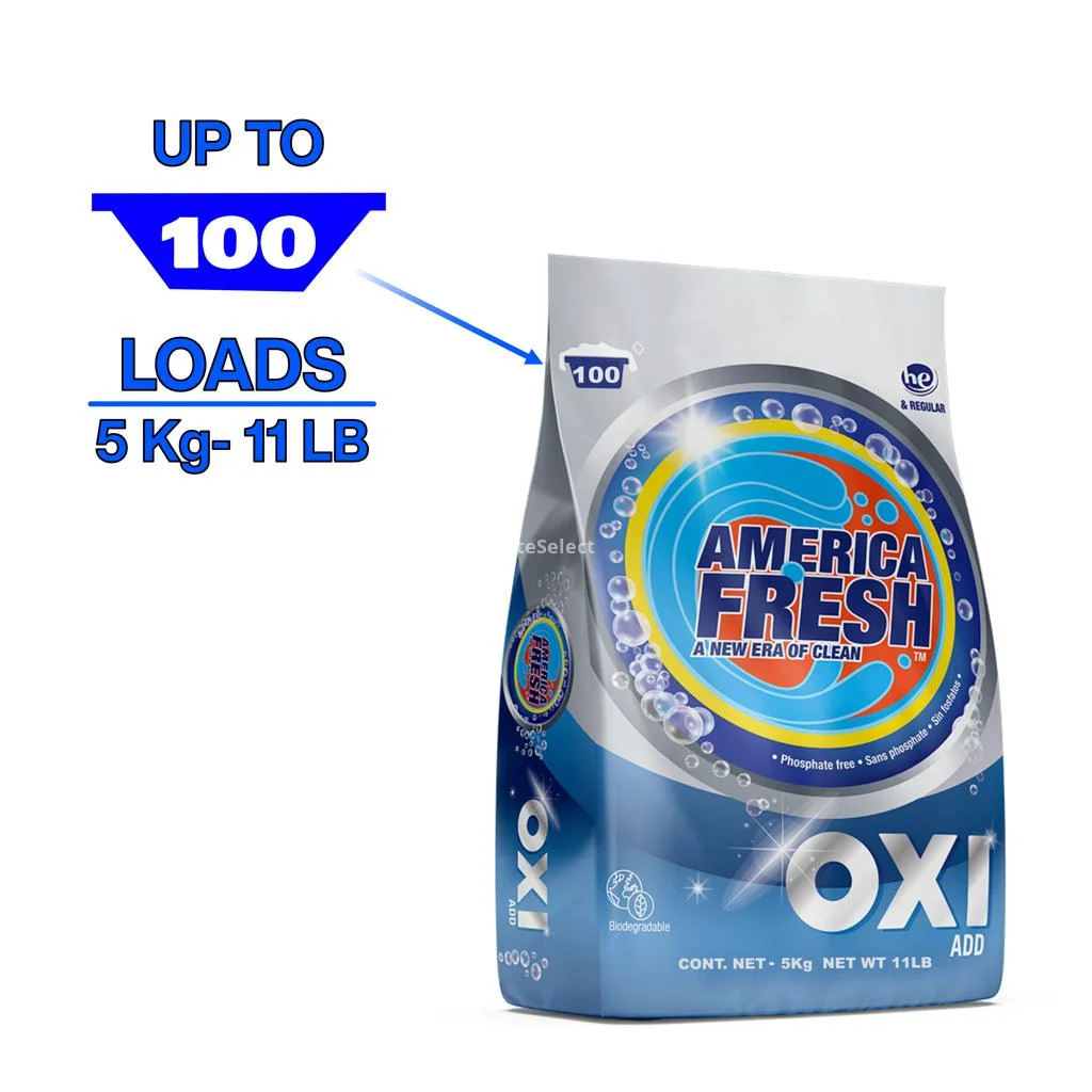 America Fresh OXI ADD detergent powder is formulated to offer deep cleaning and lasting freshness in each laundry load. With a 100-load capacity, its powerful action against difficult stains does not affect fabrics, maintaining the garments' softness. The product releases a refreshing floral aroma that remains on clothes, providing a prolonged sensation of cleanliness. Safe to use in washing machines and its formula is biodegradable, contributing to a more environmentally responsible use.