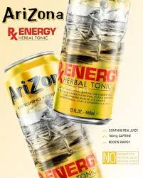 • Arizona Rx Energy Drink is an herbal-based tonic energy drink with a mix of green tea, tropical and citrus fruits, with main ingredients such as Panax ginseng, eleuthero root, guarana, Schisandra, a source of vitamins A, C and E, which are added to your daily life. Ready for a boost, Rx Energy Drink is the totally natural refreshing tonic with a unique herbal flavor that goes with you wherever you go. It may be first thing in the morning or mid-afternoon. But whenever you feel the need for a small stimulus, take a bottle of Arizona RX Energy.