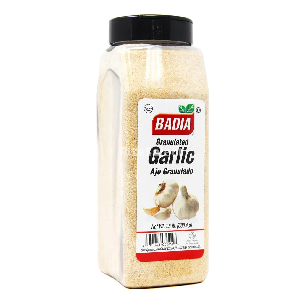 Form Granulated Storage Room Temperature Unit Weight (Each) 680.0000 g Net weight 680.0000 g Type of spice Granulated Garlic Package Quantity (Counts) 1 Country of Origin United States Imported / National Imported Allergens Does Not Contain Any of the Major AllergensBrand Badia