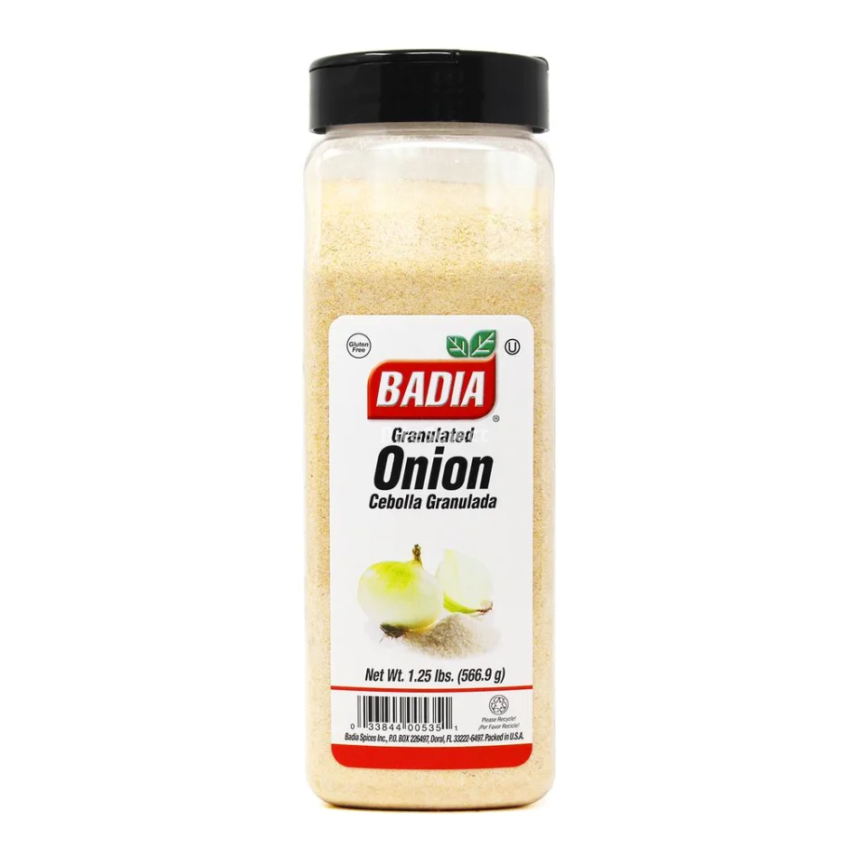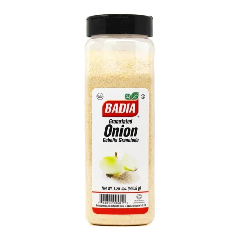 Form Granulated Storage Cool and dry place Unit Weight (Each) 566.9000 g Net weight 566.9000 g Type of spice Onion Trans Fat Free Yes Package Quantity (Counts) 1 Country of Origin United States Imported / National Imported Allergens Does Not Contain Any of the Major AllergensBrand Badia