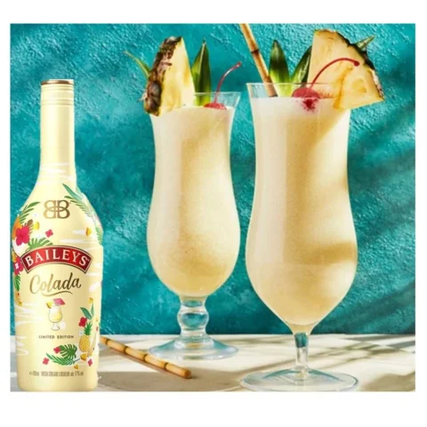 Whisky cream with piña colada flavor that transports you to paradise. Baileys Piña Colada combines the softness of classic Irish cream with creamy coconut notes and the juicy sweetness of pineapple. A tropical mix that may be enjoyed straight, on ice, or in irresistible cocktails. Perfect for toasting to life's small pleasures, it will make you feel as on vacation with each sip.