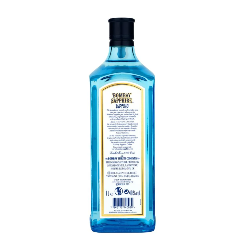 • Includes 1 unit of Bombay Sapphire London Dry Gin 1 L. Each bottle of Bombay Sapphire reflects a rigorous selection process, as well as an unwavering resolve to create fresh, clean and intense flavors. It meets two of the most important criteria for choosing a gin: you can prepare an excellent Dry Martini and an incredible Gin & Tonic. Imported product. *EXCESSIVE CONSUMPTION OF THIS PRODUCT IS HARMFUL TO THE CONSUMER'S HEALTH - The sale of alcoholic beverages in any form to persons under 18 years of age is prohibited.