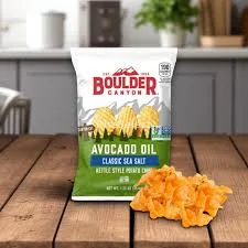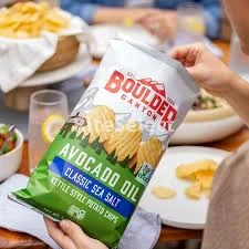 • Boulder Canyon avocado-flavored potato chips offer a crispy and flavorful experience, ideal for those who enjoy natural and authentic snacks. Prepared with avocado oil, each crunch reveals a perfect balance between kettle-style texture and the mild and salty touch of classic sea salt. Their slow and careful cooking process allows you to obtain golden and crispy potato chips, highlighting the natural flavor of selected potatoes without adding artificial ingredients.