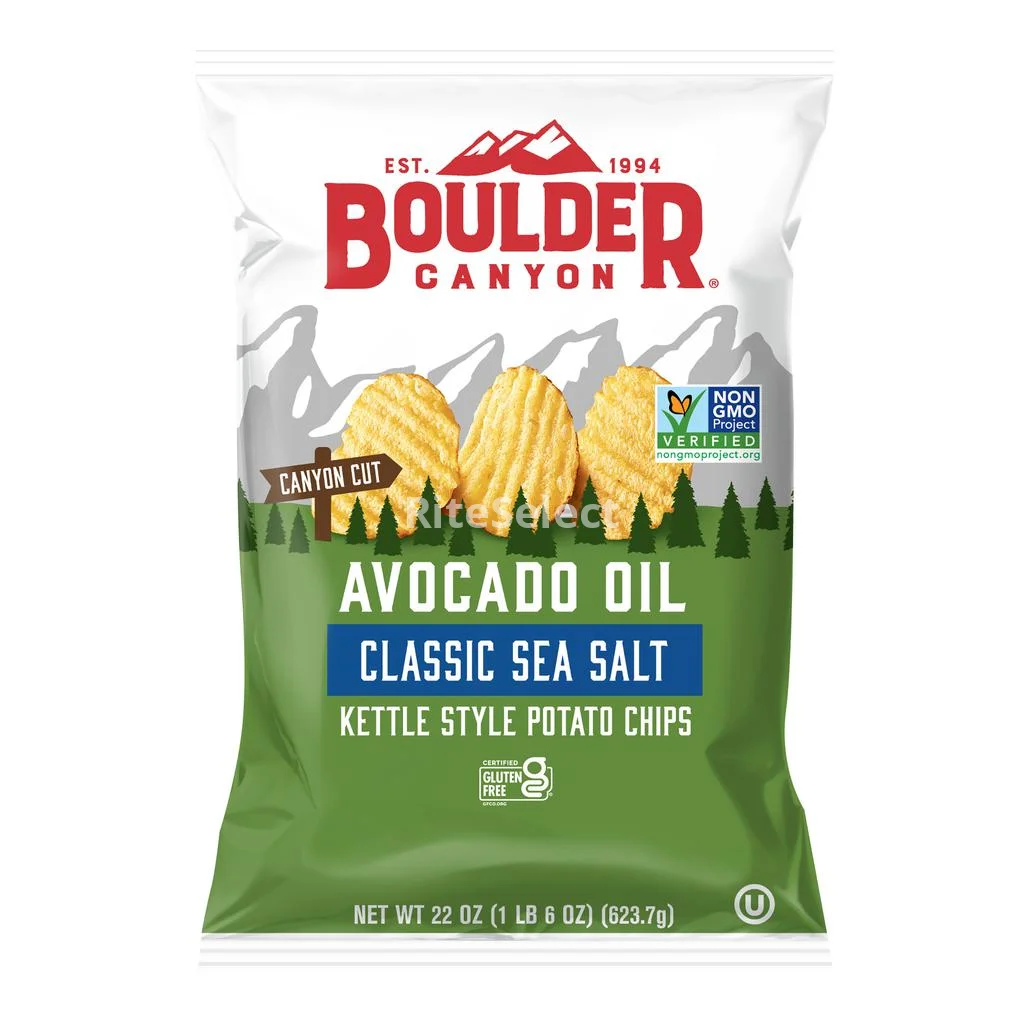 Boulder Canyon avocado-flavored potato chips offer a crispy and flavorful experience, ideal for those who enjoy natural and authentic snacks. Prepared with avocado oil, each crunch reveals a perfect balance between kettle-style texture and the mild and salty touch of classic sea salt. Their slow and careful cooking process allows you to obtain golden and crispy potato chips, highlighting the natural flavor of selected potatoes without adding artificial ingredients.