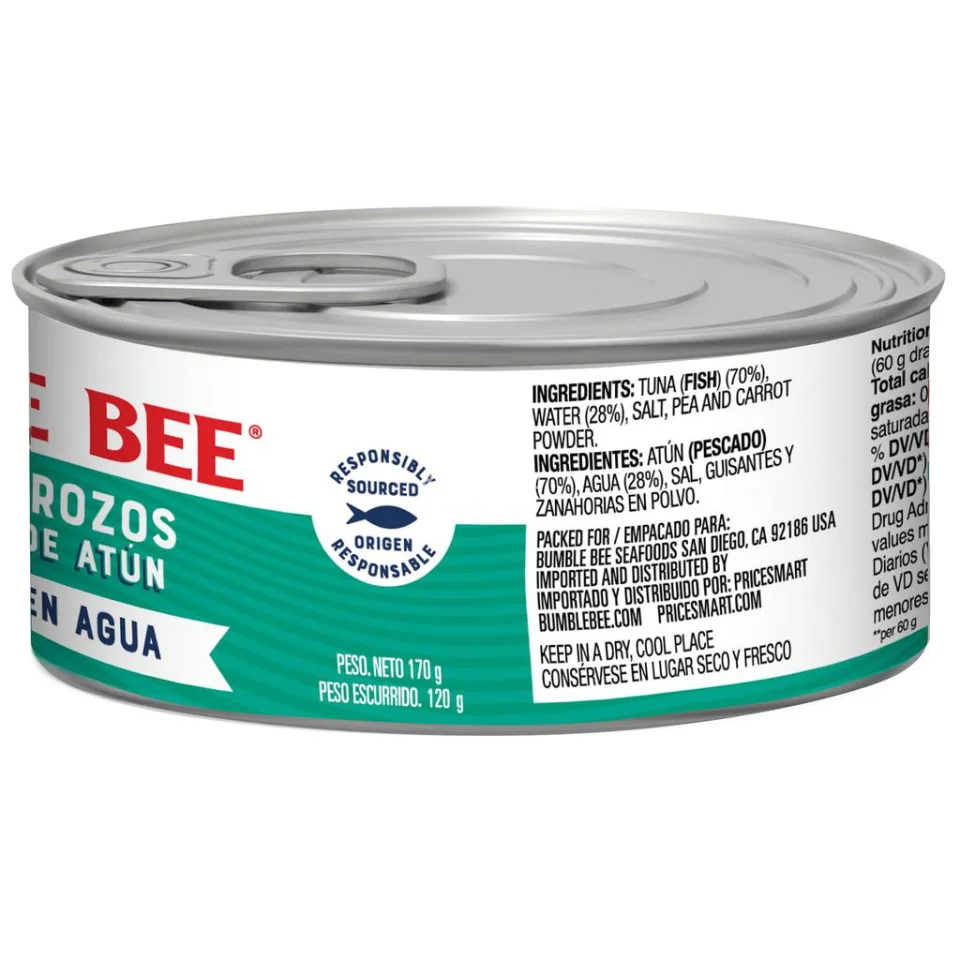 Net Weight: 170 g / 6 oz | Drained Weight: 120 g / 4.2 oz | High in protein, ready to eat, and convenient. Wild-caught, non-GMO. Contains: omega-3; vitamin B6; niacin; iron and selenium | Store in a cool, and dry place.