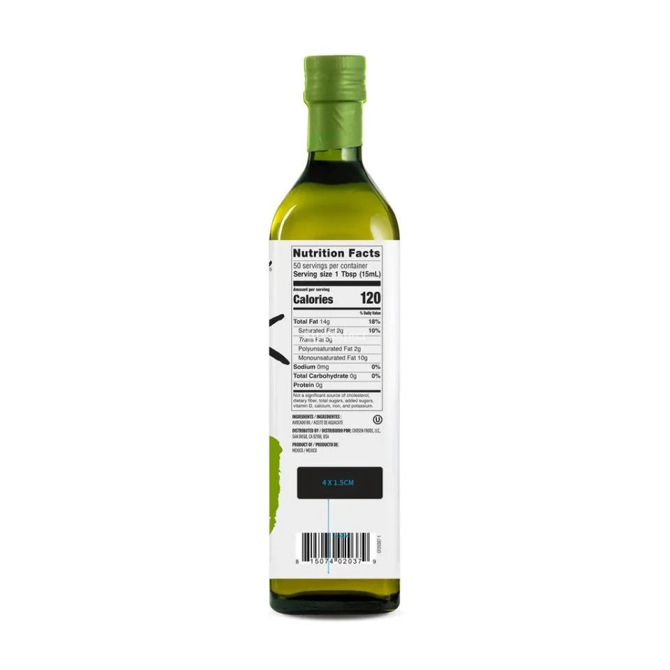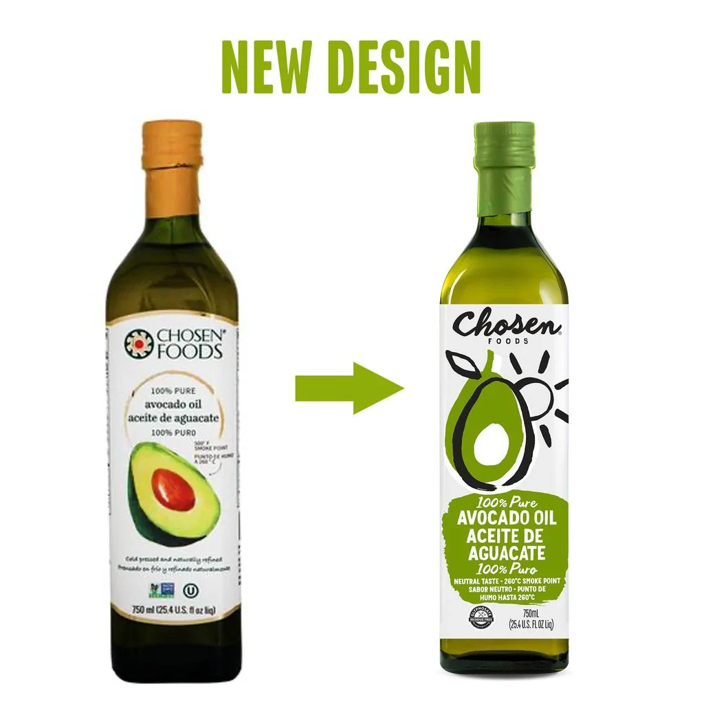 Each bottle of Chosen Foods Avocado Oil is 100% pure, naturally refined and made from avocados ripened to perfection | Non-GMO and glyphosate residue free | 10 grams of monounsaturated avocado fat per serving | Gluten free | No soy or canola oil | Non-GMO certified | Chosen Foods is launching its new look, you may receive the same product in the old packaging. Images are for illustrative purposes only. Please refer to the physical product label for updated ingredient and nutrition information.