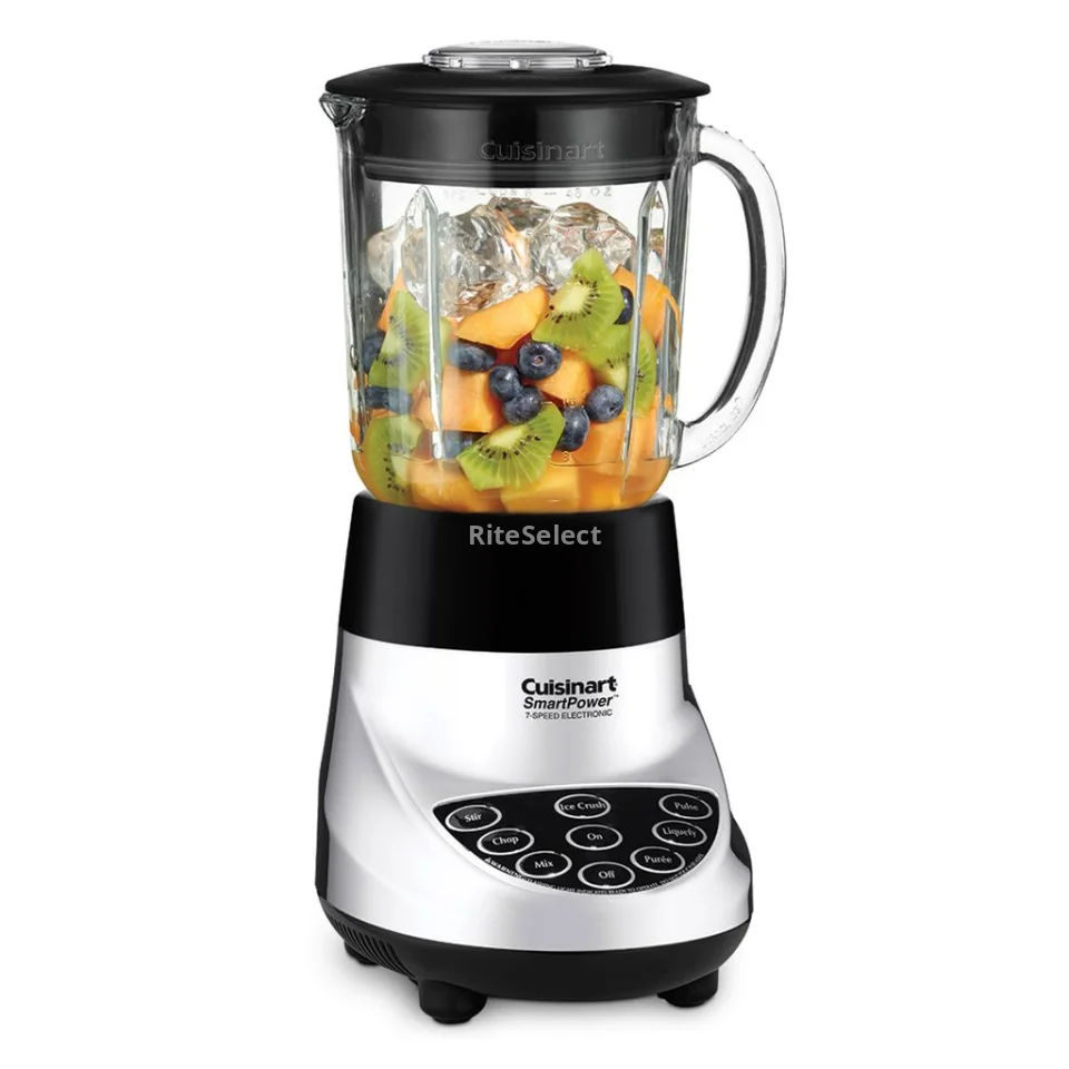 With a solid structure and a design intended for constant use, the Cuisinart 7-speed blender offers consistent results thanks to its 500-watt motor. Its tempered glass jar, safe for hot or cold ingredients, is ideal for both freshly boiled soups and frozen shakes. Touch controls allow you to quickly access the seven preconfigured functions, including an ice crush option. The control panel surface is easy to clean and the detachable parts can be placed directly in the dishwasher, making this blender an efficient ally in any kitchen.