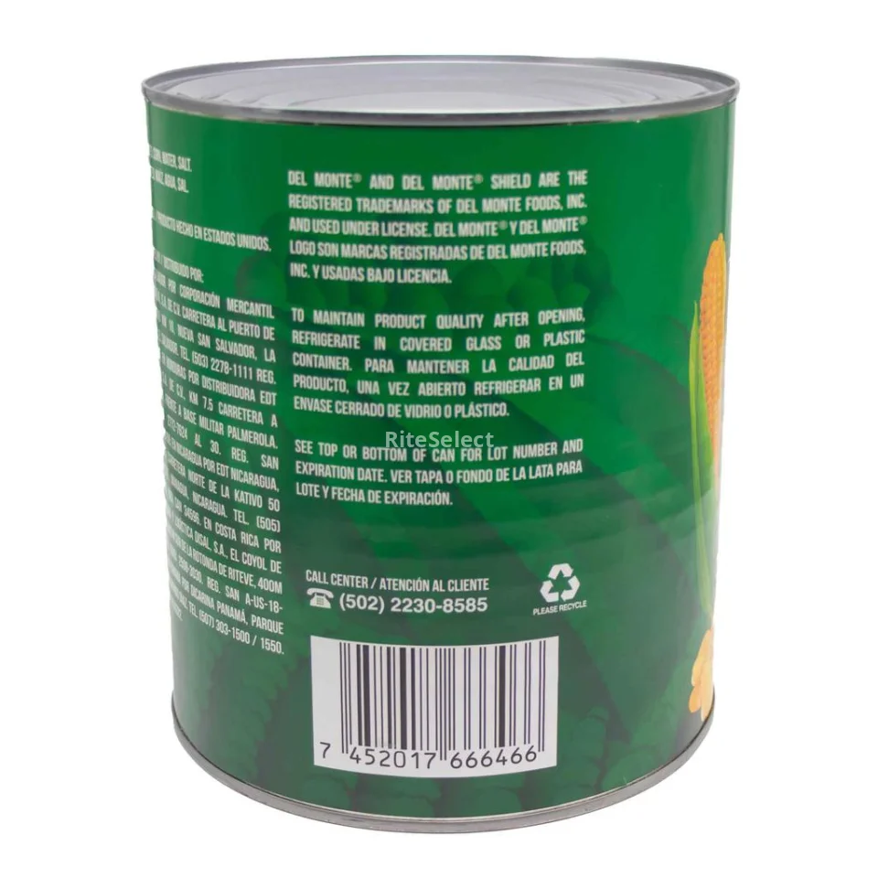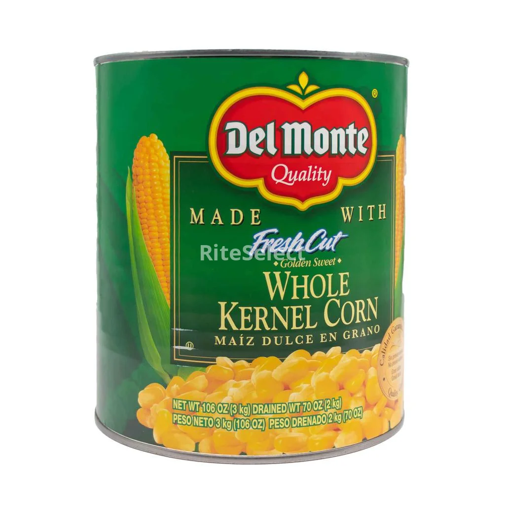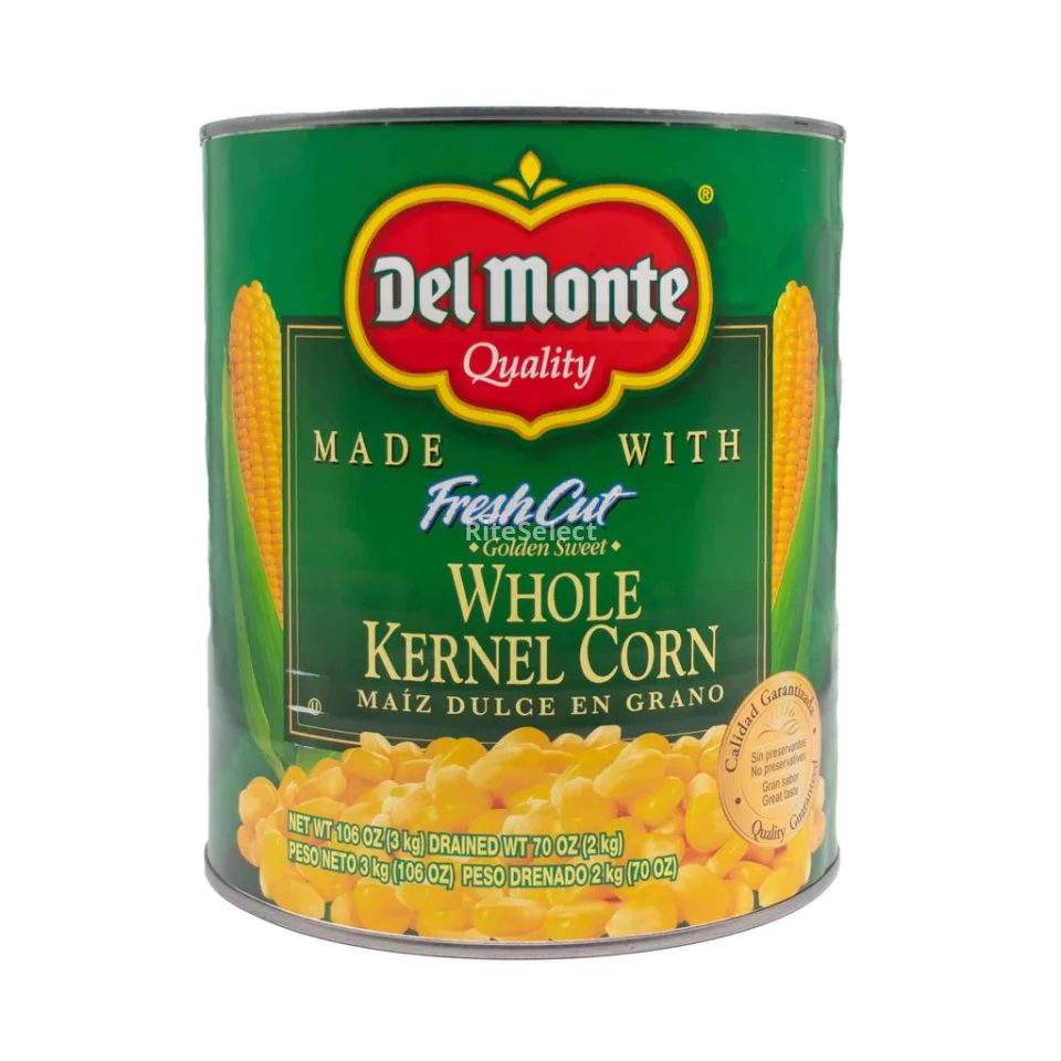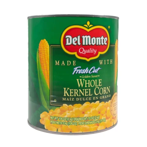 Discover culinary excellence with Del Monte Whole Golden Corn 3 kg (6.6 lb)! Make your homemade meals irresistible in minutes with this high-quality product. Carefully cultivated in the United States and harvested at the peak of freshness, this canned sweet corn is the perfect side dish ready to enjoy anytime. Elevate your dishes with the unsurpassed quality of Del Monte – bring the freshness of the farm directly to your table!