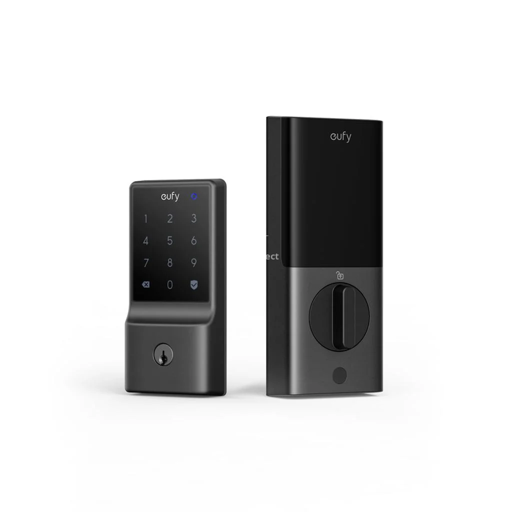 • Built-in WiFi | Matter and HomeKit demotics support | Google and Alexa compatible | Panel type: touch | 4 unlocking methods | Includes 2 physical keys | Automatic locking function | Powered by 8 AA batteries | Battery life: 8 months | Model: T85D2 | Made in China.