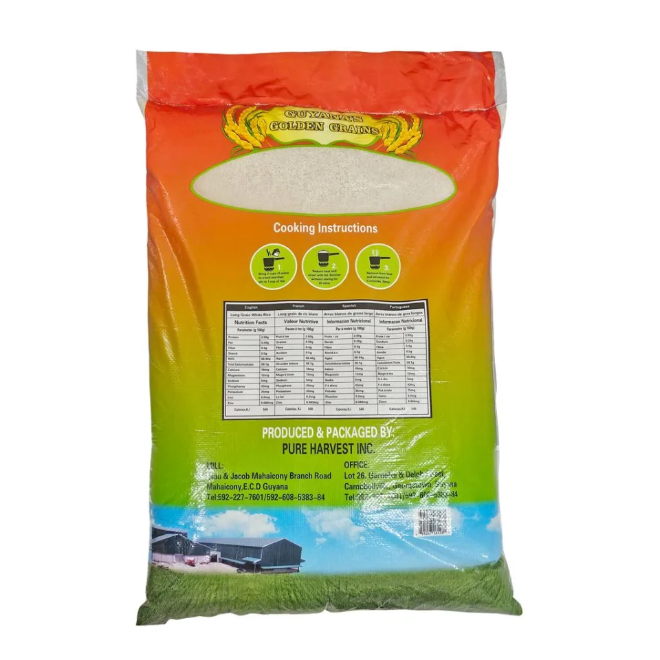 Storage Room Temperature Unit Weight (Each) 45.0000 kg Net weight 45.0000 kg Rice Classes Long Grain Package Quantity (Counts) 1 Country of Origin Guyana Imported / National Imported Allergens WheatBrand Golden Grains