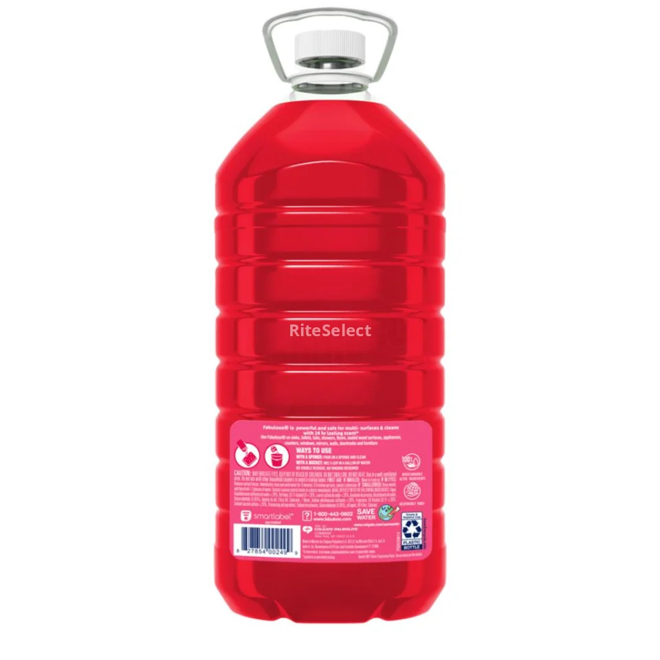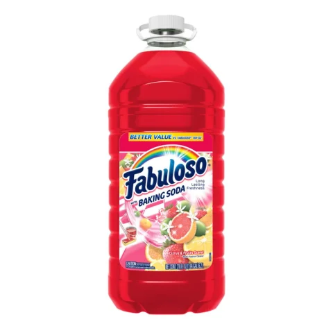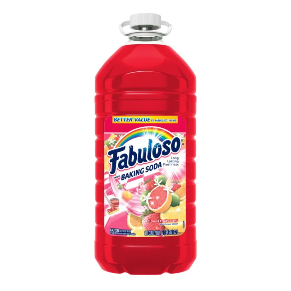 Fabuloso Multi-Purpose Disinfectant Cleaner | Scent: Fruit and Citrus with Sodium Bicarbonate | Volume: 6.2 L / 210 oz | Origin: Mexico | Antibacterial and Antiviral Action: eliminates E. coli, P. aeruginosa, S. typhimurium, S. aureus | Use: multi-surface | Application Method: dilute in water for general cleaning or use undiluted for disinfection with action in 5 minutes | No rinsing required | Leaves no visible residue | Packaging: plastic bottle with ergonomic design and easy-pour spout | Scent duration: over 24 hours (tested in controlled environment) | Storage Recommendations: store in a cool, dry place; keep out of reach of children.