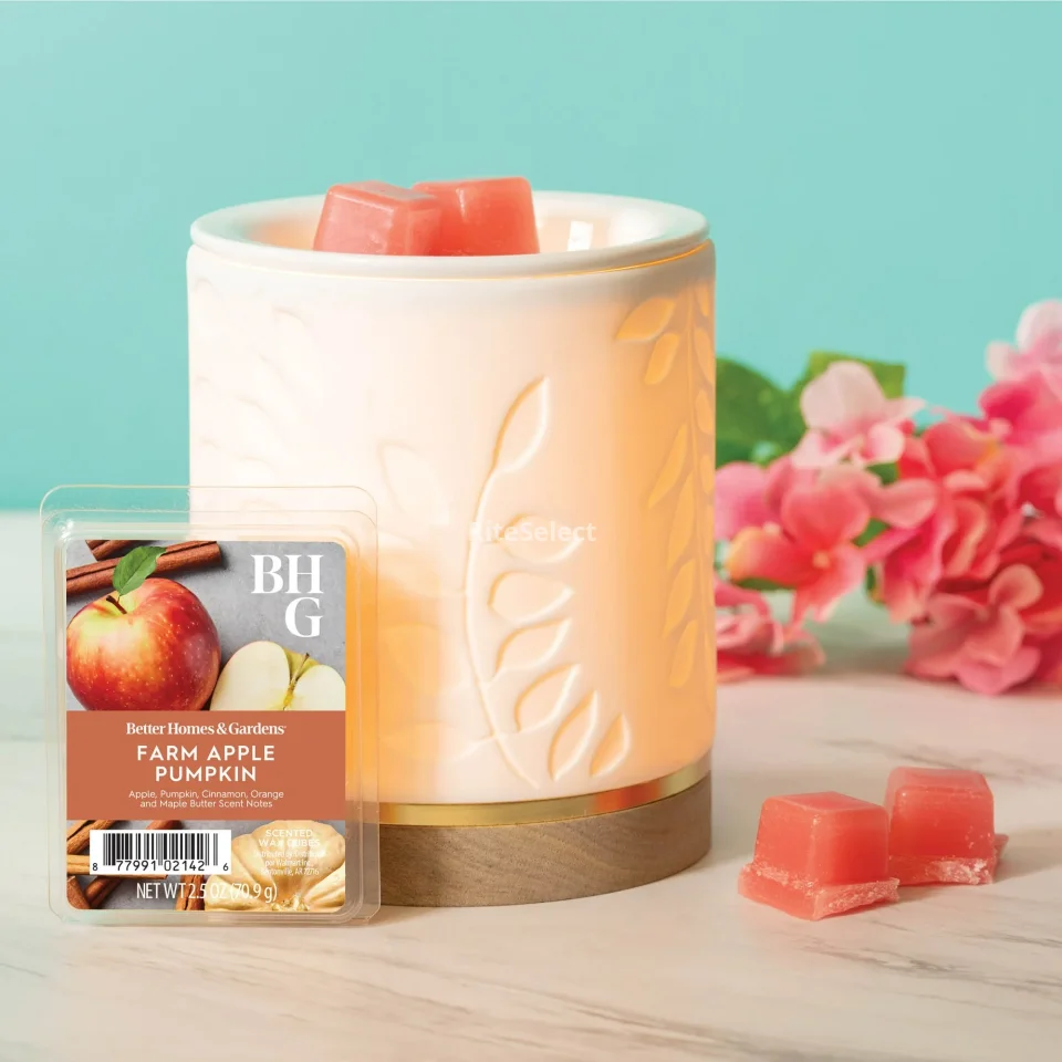 Better Homes & Gardens Farm Apple Pumpkin Scented Wax Melts: Highly Fragranced Wax can be recycled or reused Easy clean up Contains 6 Wax Cubes For Home or Office Personalize your space scented cubes release a soothing and fragrant scent into the air immediately upon melting replace wax melts when the fragrance is gone No flame or soot residues with Electric Wax WarmerWax Warmer sold separately.