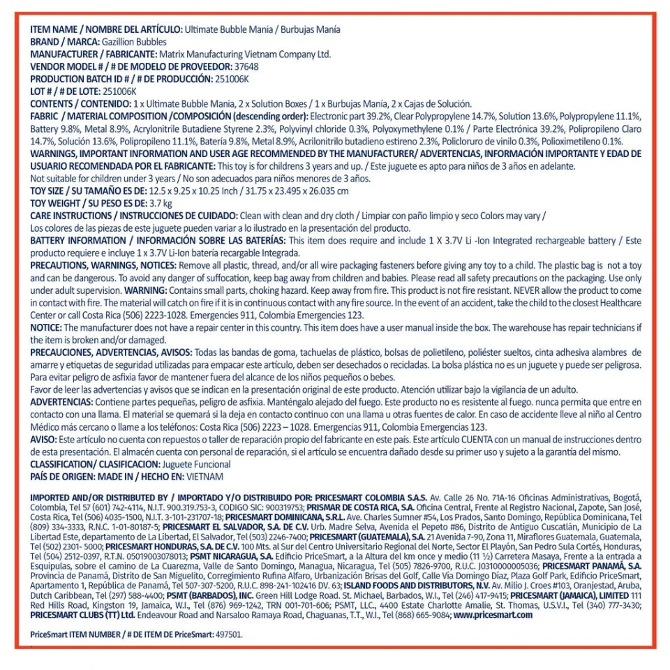 • Gazillion Ultimate's bubble machine creates a continuous, fun, and visually stunning play experience. Its powerful generation system produces thousands of bubbles per minute, creating an immersive effect ideal for children's parties, outdoor celebrations, family gatherings, or recreational activities for children.