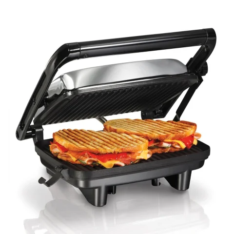 For a quick breakfast, a special lunch or a casual dinner, the Hamilton Beach Gourmet Sandwich Maker is ready to transform your meals into unforgettable experiences. Designed to perfect every detail, from its non-stick grill that ensures clean and easy removal, to its floating lid that accommodates any sandwich thickness. But that's not all, with its vertical storage function, it becomes the perfect complement to any kitchen, maximizing space and style. Thanks to its alert lights, you'll know exactly when your sandwich maker is ready to deliver those warm, crispy results, without the need to flip. And if you care about the details, you'll be happy to know that both the top and bottom heat your sandwich evenly. Get ready to be amazed and delight your taste buds with sandwiches, waffles or paninis that look like they came straight from a gourmet restaurant.