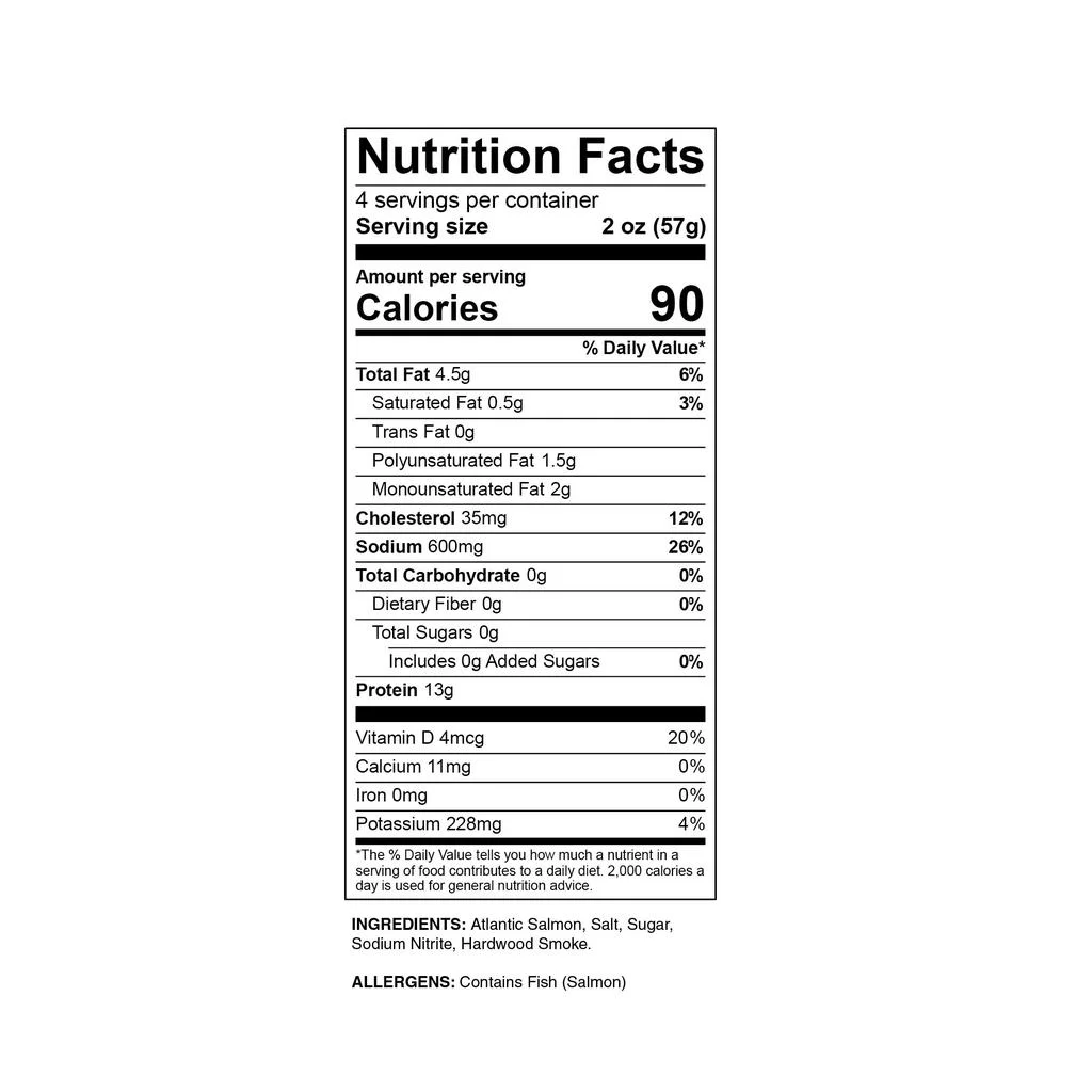 • Salmon, Salt, Sugar, Sodium Nitrate, Smoked.