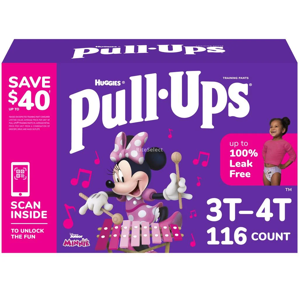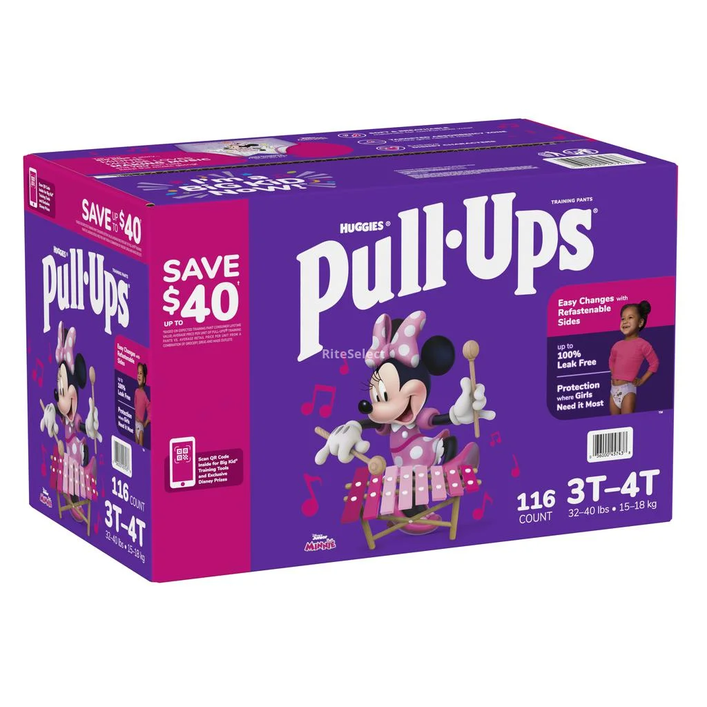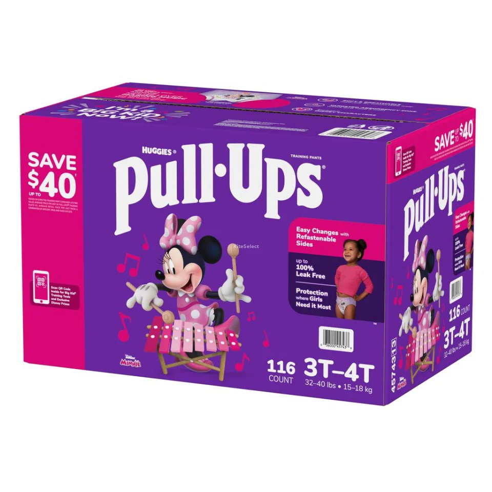 Looking for a training solution for your little girl? Huggies Pull Ups training diaper with waterproof barriers for girls in sizes 3T-4T is the answer you're looking for. Weighing 15 - 18 kg (32 - 40 lb), these diapers are designed to keep girls protected throughout the day and night. Changing diapers is super easy thanks to the easy-open sides. Best of all, they're made of soft material that provides underwear-like comfort, so your little one will feel comfortable and secure as she learns to potty train on her own.