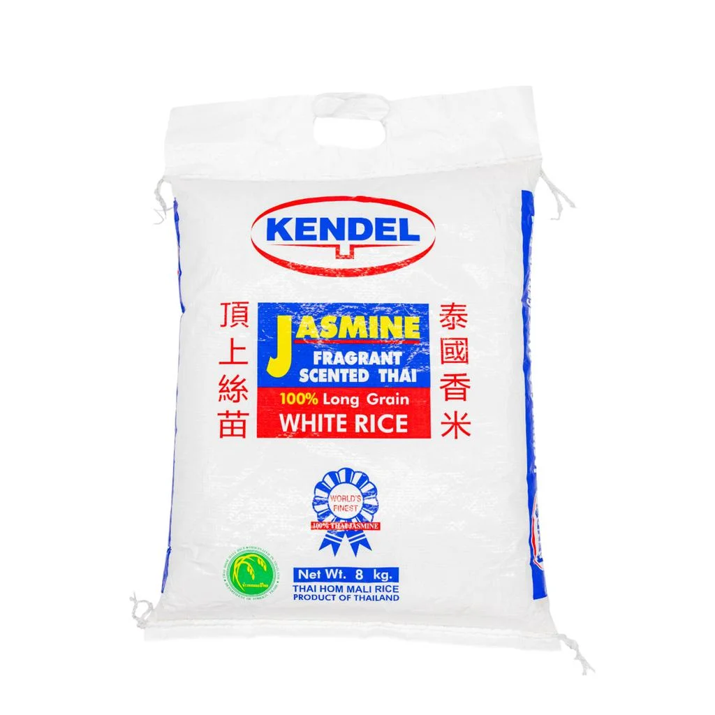 Hom Mali 100% long-grain Thai jasmine rice with characteristic aroma | Cook to obtain a soft and fluffy texture, suitable to accompany Asian curries, sautéed dishes, soups, or everyday homemade recipes | Versatile ingredient to use as a base garnish for fried rice or as a complement in preparations with chicken, seafood, or vegetables | 8 kg bulk | Product of Thailand | 100% jasmine rice as the only ingredient.