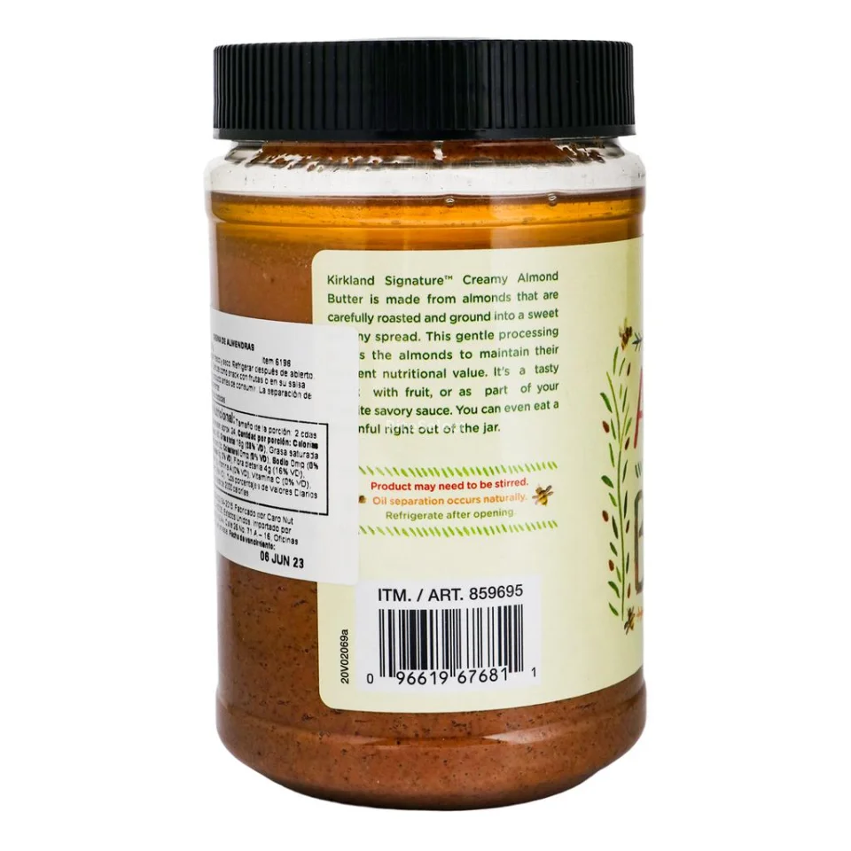 Almond butter | Kosher product | Gluten free | Must be shaken before use and refrigerated after opening | Ready to eat | Source of protein and dietary fiber | Can also be used for healthy shakes or smoothies | Can also be used for healthy smoothies or shakes.
