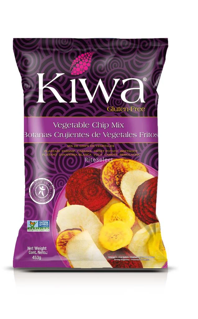 • Kiwa Vegetable Chips feature a unique variety of veggies from South America, including plantain, beetroot, parsnip, cassava, and sweet potato to offer a mix of exotic flavors. A veggie snack to enjoy anytime, anywhere. All Kiwa snacks are handmade and kettle cooked.