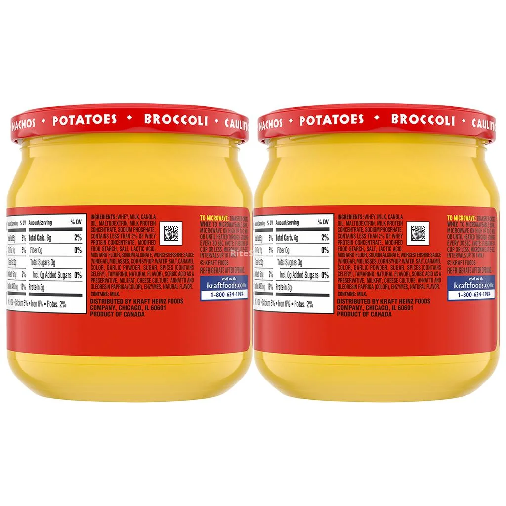 • Kraft Cheez Whiz comes in a pack of 2 units, each containing a creamy sauce with an intense cheese flavor. This product is designed to be versatile in the kitchen, offering a quick and tasty solution for those who want to add a touch of cheese to their meals. Its smooth and spreadable texture makes it ideal for both hot and cold dishes.