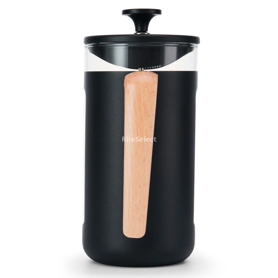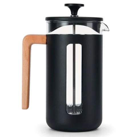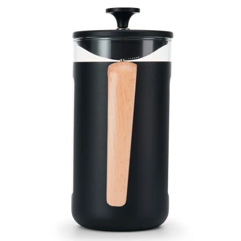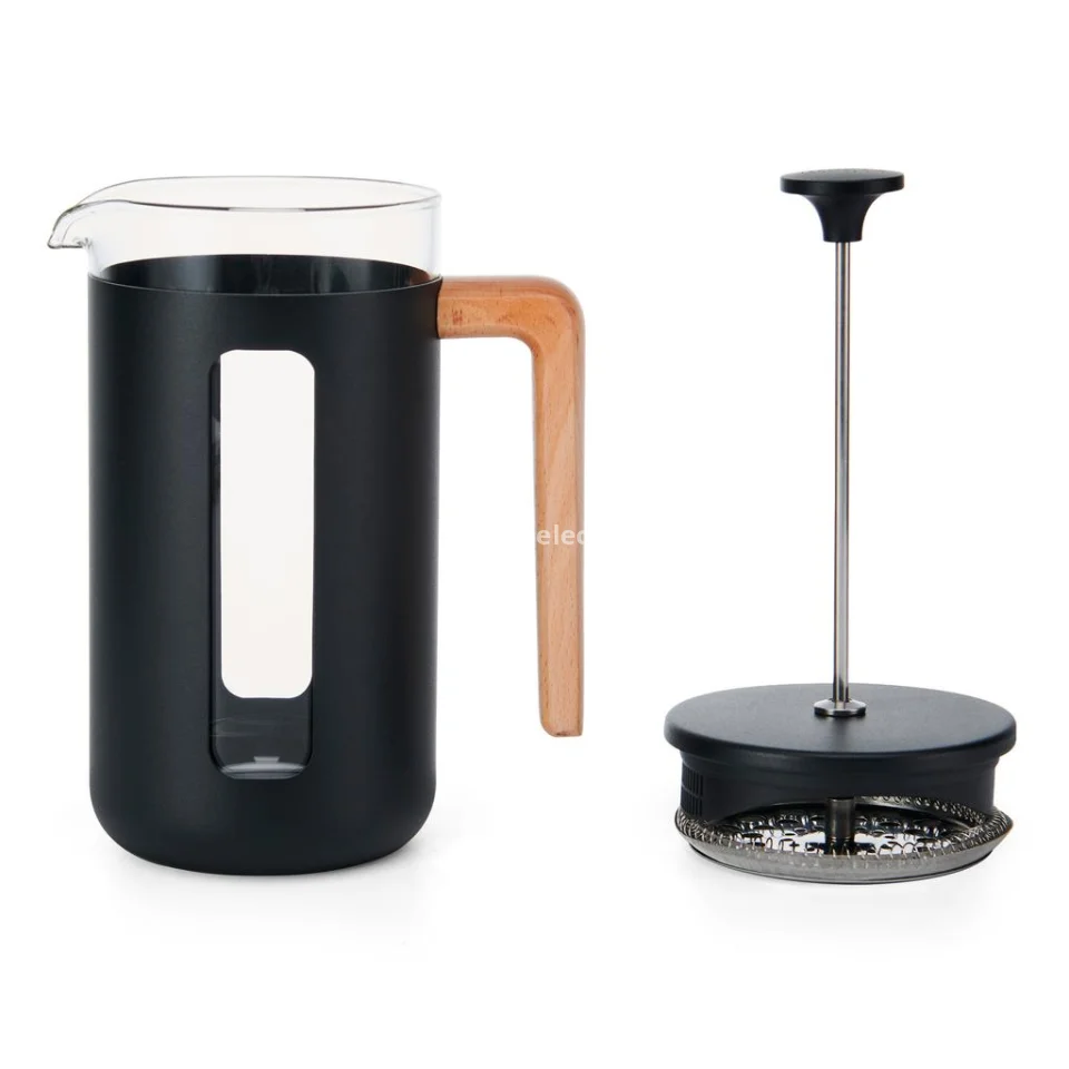 Every detail of this french press has been designed for lovers of artisanal coffee. The durable glass allows you to observe the brewing process, while its stainless steel filter ensures a clean extraction with no ground coffee residue. The metal frame with matte finish protects the glass and adds durability, while the elegant wooden handle makes serving stylish and easy. It is ideal for those who value the simplicity of the French method without giving up contemporary design.