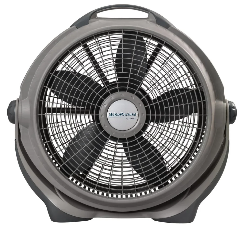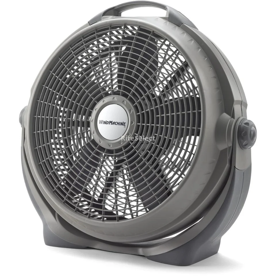 Comes in dark gray. It features an integrated easy-grip handle, 5 blades, and an energy-saving system. It is made of plastic which makes it lightweight, durable, and immune to rust so you can use it in humid conditions, as well as safe and efficient since it is equipped with patented Blue Plug safety fuse technology. Its dimensions are 65 cm x 65 cm x 19 cm and it has a weight of 4.5 kg. Model: A20303.