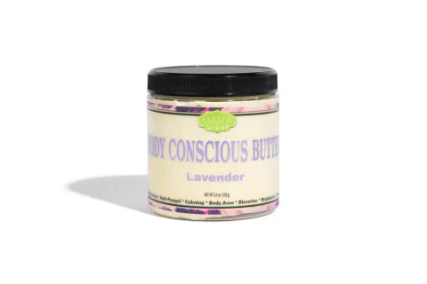 Discover the rejuvenating power of our Lavender Conscious Body Butter. This luxurious cream provides intense hydration, nourishing your skin for a radiant glow. Enhanced with lavender essence, it offers a calming aroma while promoting skin healing and reducing inflammation. Packed with antioxidants, it fights off environmental stressors, slows aging signs, and brightens your complexion. Make it an essential part of your daily skincare ritual for healthy, beautiful skin.