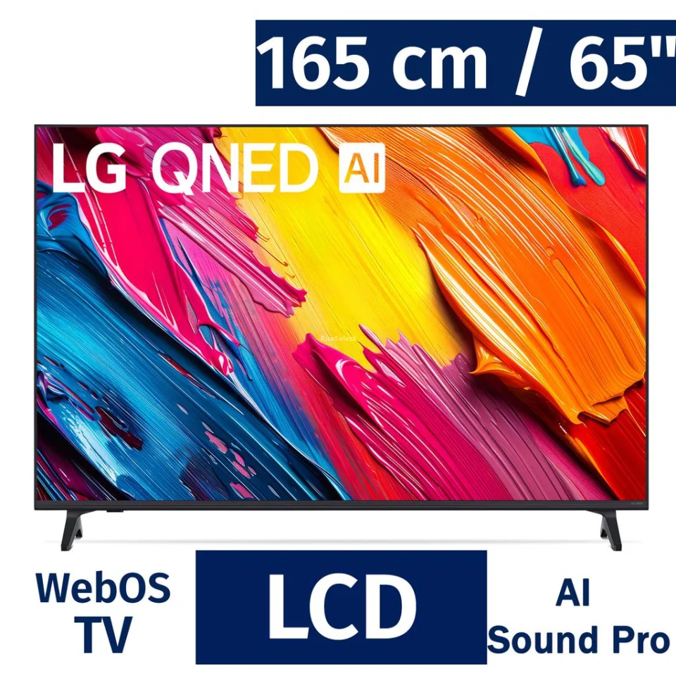 • Display Type: 4K QNED | Resolution: 4K Ultra HD, 3 840 x 2 160 | Backlight: Direct | Display Size: 165 cm / 65" | Refresh Rate: 60 Hz | Color Gamut: Dynamic QNED Color | Image Processor: α7 AI Processor 4K Gen8 | CPU: Quad | Upscaling: 4K Super Upscaling | VRR support up to 60 Hz | Operating system: webOS 25 | Intelligent voice control with integrated AI | Compatible with Alexa (integrated), Google Home, Apple Home and Apple Airplay2 | Magic Remote MR25 included with AAA batteries (2) | Connectivity: Wi-Fi 5 | Bluetooth 5.0 | 3 HDMI inputs (with eARC and ALLM) | 1 USB 2. 0 | 1 antenna/cable input | 1 optical output | Ethernet | Audio output: 20W (2 channels of 10W) with AI Sound Pro (Virtual 9.1.2 Up-mix) | Dimensions with stand: 157.7 cm x 98.8 cm x 35.7 cm / 62.1" x 38. 8“ x 14.1” | Dimensions without stand: 157.7 cm x 87.6 cm x 6.5 cm / 62.1“ x 34.5” x 2.6" | Weight with stand: 64.8 kg / 142.9 lb | Weight without stand: 57.3 kg / 126.3 lb | Model: 65QNED70AUA | Made in Mexico.