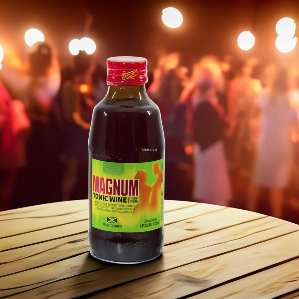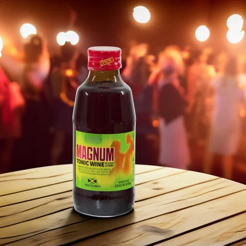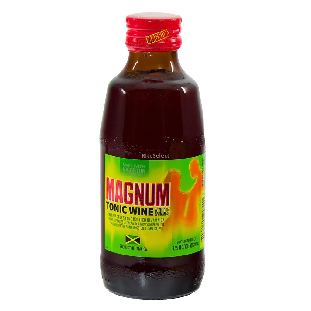 • Magnum tonic wine does not imply curative or medicinal properties, it is an exclusive ready-to-drink fortified tonic wine from Jamaica. It has a deliciously smooth, syrupy sweet taste with a distinctive cherry flavor. Originally introduced to the Jamaican dancehall scene in 1999, the small bottle remains as iconic now as it was then. You can enjoy it straight from the bottle or experiment with Magnum's unique flavor profile in simple cocktails. It is an original Jamaican recipe. It contains 100 percent natural ingredients. It has been marketed as a healthy drink that promotes energy, although it contains alcohol. The composition of Magnum Tonic Wine is a blend of herbs, mead, and tonic. The taste has been compared to ginseng but with a syrupy sweetness. A claim to fame for Magnum Tonic Wine is an infusion of vitamins, especially iron and B12.