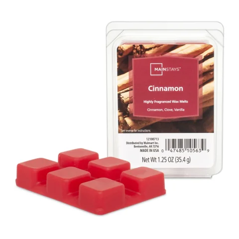 Indulge your senses and embrace the spirit of the season with Mainstays Cinnamon 1.25 oz wax melts, and let the delightful aroma of cinnamon, clove, and vanilla transport you to a cozy haven of holiday cheer and heartwarming joy.