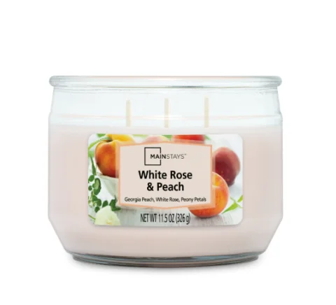 White Rose & Peach scented candles offer a captivating blend of delicate white roses and juicy Georgia peaches and peony petals, creating a harmonious, velvety soft fragrance that exudes elegance and freshness. These candles encapsulate the essence of a blooming garden, infusing your space with the alluring aroma of romantic roses and the luscious sweetness of ripe peaches. The scent of White Rose & Peach candles is a beautiful marriage of floral grace and fruity indulgence. As the candle burns, it releases gentle waves of white rose petals, filling the air with their soft, intoxicating scent. The subtle sweetness of succulent peaches complements the floral notes, creating a captivating and balanced aroma that is both uplifting and comforting. Crafted with meticulous care, White Rose & Peach candles are designed to provide a luxurious and long-lasting experience. The premium wax blend ensures a clean and even burn, while the lead-free cotton wick allows for a steady flame. When lit, the warm flickering flame of a White Rose & Peach candle casts a soft and inviting glow, creating a serene ambiance. The gentle illumination enhances the overall atmosphere, making it perfect for unwinding after a long day, setting a romantic mood, or simply indulging in self-care. These scented candles make for a thoughtful gift, offering a sensory journey that evokes a sense of beauty and tranquility. They are perfect for birthdays, anniversaries, or as a token of appreciation. The fragrance of White Rose & Peach candles brings a touch of elegance and serenity to any occasion. Immerse yourself in the enchanting fusion of white roses and peaches with Mainstays White Rose & Peach scented candles. Let the delicate aroma transport you to a blooming garden, where the soft petals of white roses mingle with the sweet, juicy essence of ripe peaches. Indulge in this captivating scent and create a serene sanctuary that uplifts your spirits and soothes your soul.