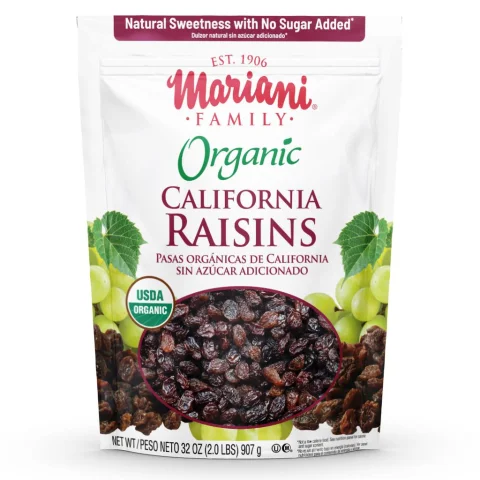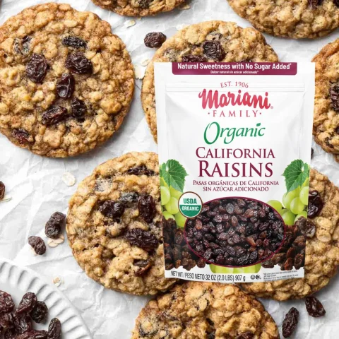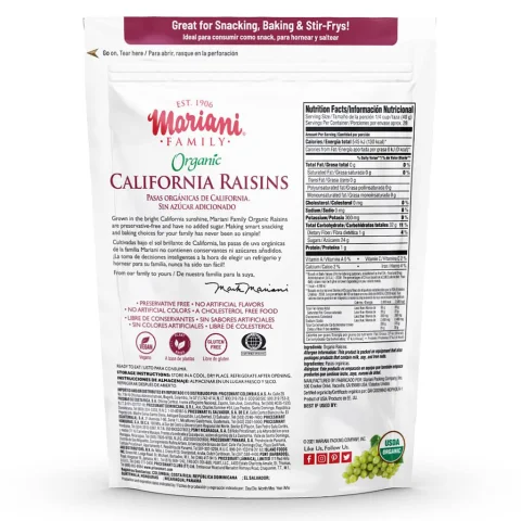 Grown in the bright California sunshine, Mariani Family Organic Raisins are preservative-free and have no added sugar. They are ideal for a sweet snack without guilt. Making smart snacking and baking choices for your family has never been so simple!