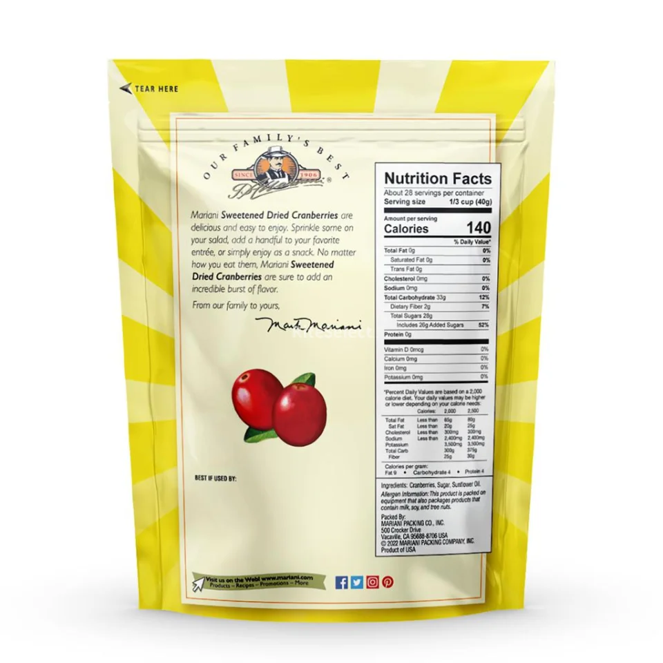 Mariani cranberries are the perfect balance of sweetness and tanginess. They are delicious and easy to enjoy – sprinkle on your salad, add to your favorite entrée, or simply enjoy as a snack. No matter how you eat them, you’ll be comforted to know that these Cranberries are the utmost premium quality.