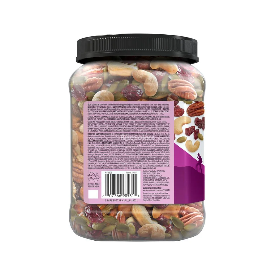 This trail mix is great for entertaining, afternoon snacking, and more, making for a versatile pantry staple you won't want to go without. Contains cashews, pecans, and peanuts. Enjoy the mix of unsalted dried sweetened cranberries, cashews, pumpkin seeds, and pecans.