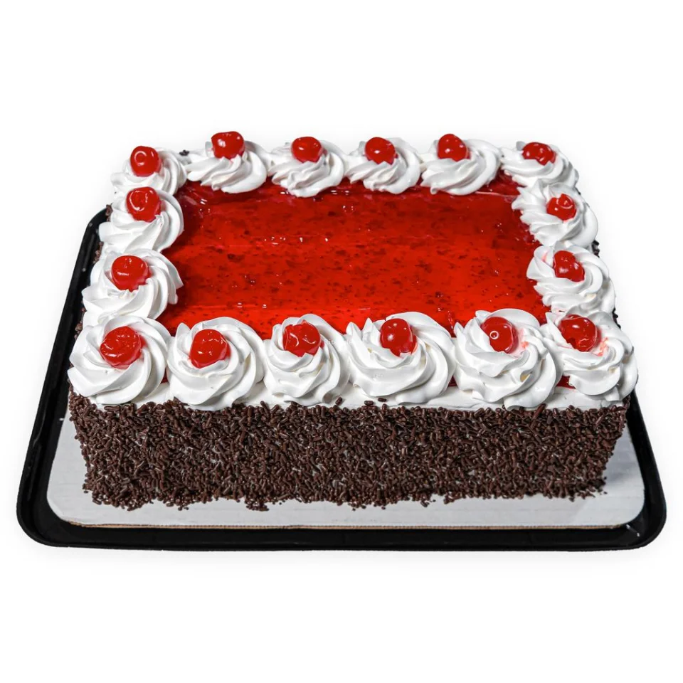 • Member's Selection Black Forest Cake is characterized by its fluffiness and freshness. Freshly baked, it offers an irresistible combination of chocolate sponge cake layers with whipped cream and cherry filling, guaranteeing a classic and sophisticated experience. With its generous size, it is ideal for large parties or gatherings, allowing to serve between 20 and 24 slices.