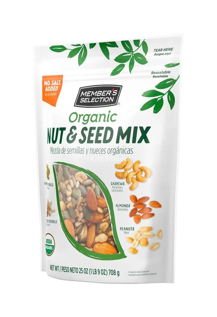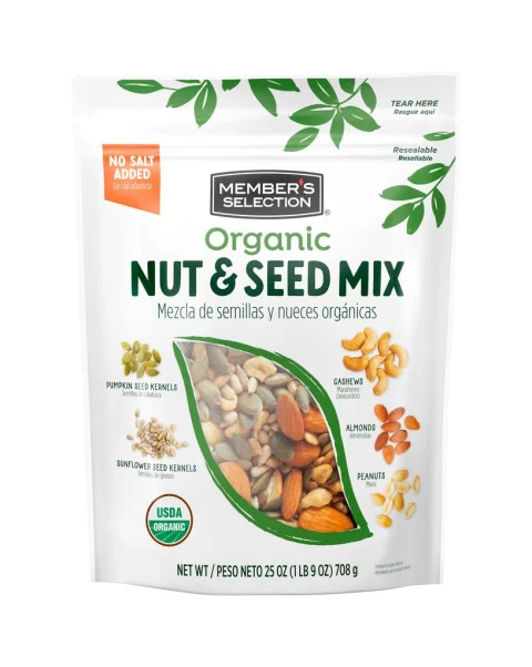Enjoy our organic trail mix with Member's Selection! is the perfect choice for those looking for a delicious snack time option. Each serving is full of organic ingredients, which means no pesticides or harmful chemicals.