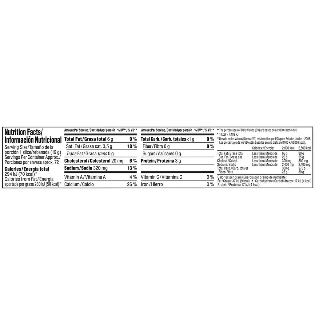 • Net weight: 1.36 kg | Its balanced flavor profile combines smooth dairy notes with a subtle hint of saltiness that enhances the taste of other ingredients without overpowering them. Each slice offers the perfect texture to melt beautifully when heated or to enjoy cold, making it easy to use both in professional kitchens and at home.
