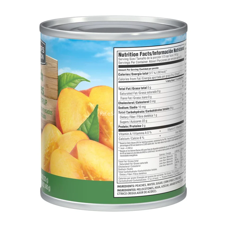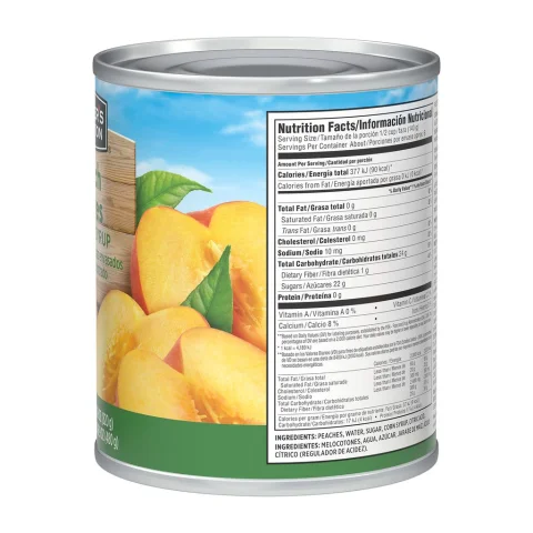 Have a unique taste experience with Member's Selection peaches in 100% fruit syrup. Produced with tradition in a place with an ideal climate for growing fruits of exceptional quality. Each bite is an explosion of freshness and sweetness that will delight your taste buds. Carefully selected peaches Make every bite a feast for your senses! Net weight per can: 820 g (28.9 oz). Weight per can after draining: 480 g (16.9 oz).