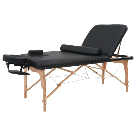 This portable salon massage table has a 6.3 cm / 2.5" thick cushion with multi-layer foam, which includes a layer of memory foam and more density than regular ones. It is oil and water-resistant. It has a polyurethane upholstery with a jean-like reinforcement backing for durability. It features wood legs with a glossy finish and an auto-lock leg system, which are easily set up in seconds; and non-marking, non-skid leg pads that make your table safe for any floor. *This item requires special delivery. A representative will contact you within 48 hours via telephone to coordinate the delivery. After coordination, delivery time is typically from 3 to 7 days.