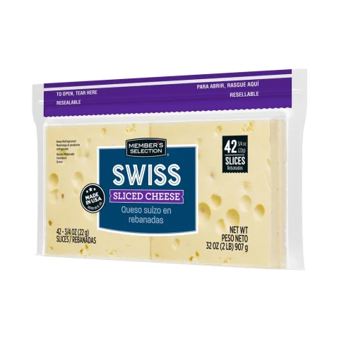 • Contains 42 slices. | Discover the sophistication of authentic Swiss Cheese with Member's Selection and transform your everyday dishes into extraordinary gastronomic experiences, elevating your culinary creations with unparalleled Swiss quality!
