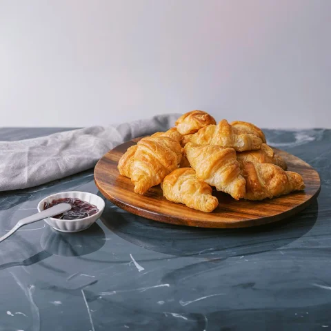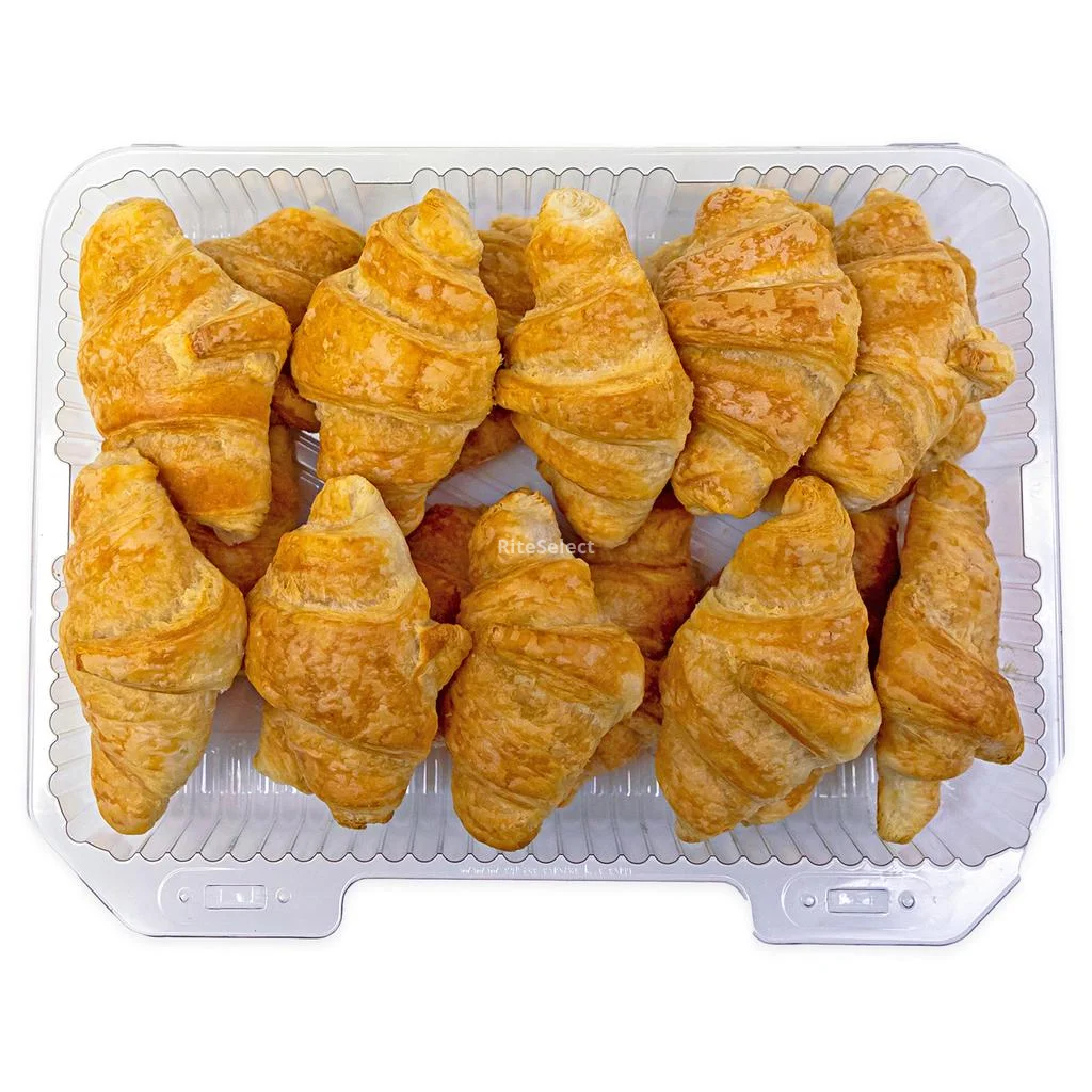 • Small French-style croissants | Presented in a clear plastic tray | Multi-layered puff pastry | Golden and glossy finish | Net Weight: 640 g / 1.41 lb | The product should be consumed once opened and before the expiration date | Keep at room temperature | Contains allergens such as wheat, eggs, dairy derivatives, and soy.