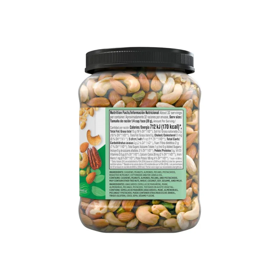 A Healthy snack for the whole family! A delicious blend of unsalted roasted cashews, peanuts, almonds, pecans, and pistachios that you can eat anytime. Take them to school, the office, or add them to your favorite recipes. Nuts are a good source of antioxidants, omega-3s, and minerals.