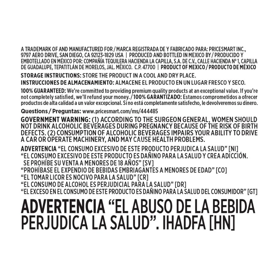 • Member's Selection 100% Agave White Tequila| Made exclusively with blue agave, guaranteeing an authentic flavor and superior quality | Fresh and clean notes that highlight the natural essence of agave | Ideal for enjoying neat, on the rocks, or as a main ingredient in cocktails | 38% alcohol | Made in Mexico. *EXCESSIVE CONSUMPTION OF THIS PRODUCT IS HARMFUL TO THE CONSUMER'S HEALTH - The sale of alcoholic beverages in any form to minors under the age of 18 is prohibited.