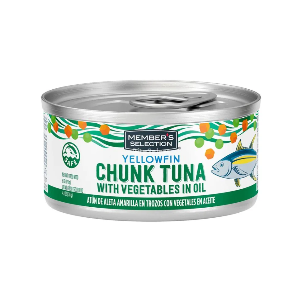 The yellowfin tuna combined with vegetables in oil from the renowned brand Member's Selection is a rich source of protein and a versatile option to include in your daily meals. Each 170-gram can is carefully prepared to offer you a delicious and nutritious mix, ideal for those seeking a balanced diet.