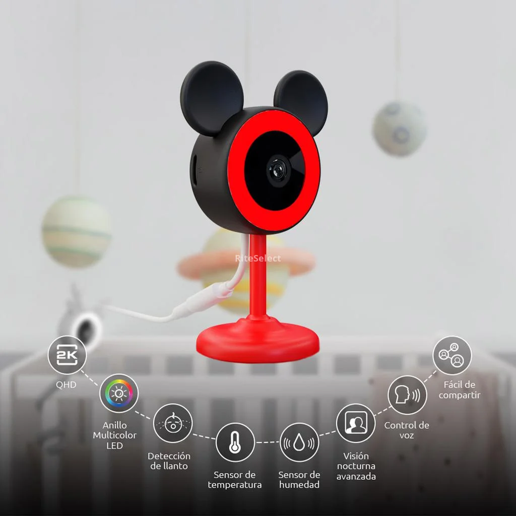• The Mickey Nexxt Solutions Kids Camera is a smart tool designed to provide parents with peace of mind while caring for their little ones. Featuring a design inspired by the beloved Mickey Mouse character, this camera not only serves a practical purpose but also adds a fun and friendly touch to children's spaces. With high-resolution imaging, this camera delivers clear and sharp visuals, enabling real-time monitoring from anywhere via its Wi-Fi connectivity. It includes night vision, motion detection, and two-way audio, making it perfect for interacting with or soothing your child from a distance.