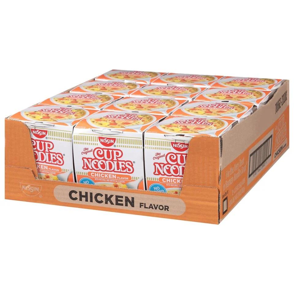 Delicious and convenient chicken-flavored soup, this 12-pack brings you the authentic essence of chicken combined with soft noodles that cook in minutes. With Nissin, enjoying a delicious ramen-style soup at home is easy and convenient. Elevate your mealtime with Nissin's unmistakable chicken flavor.