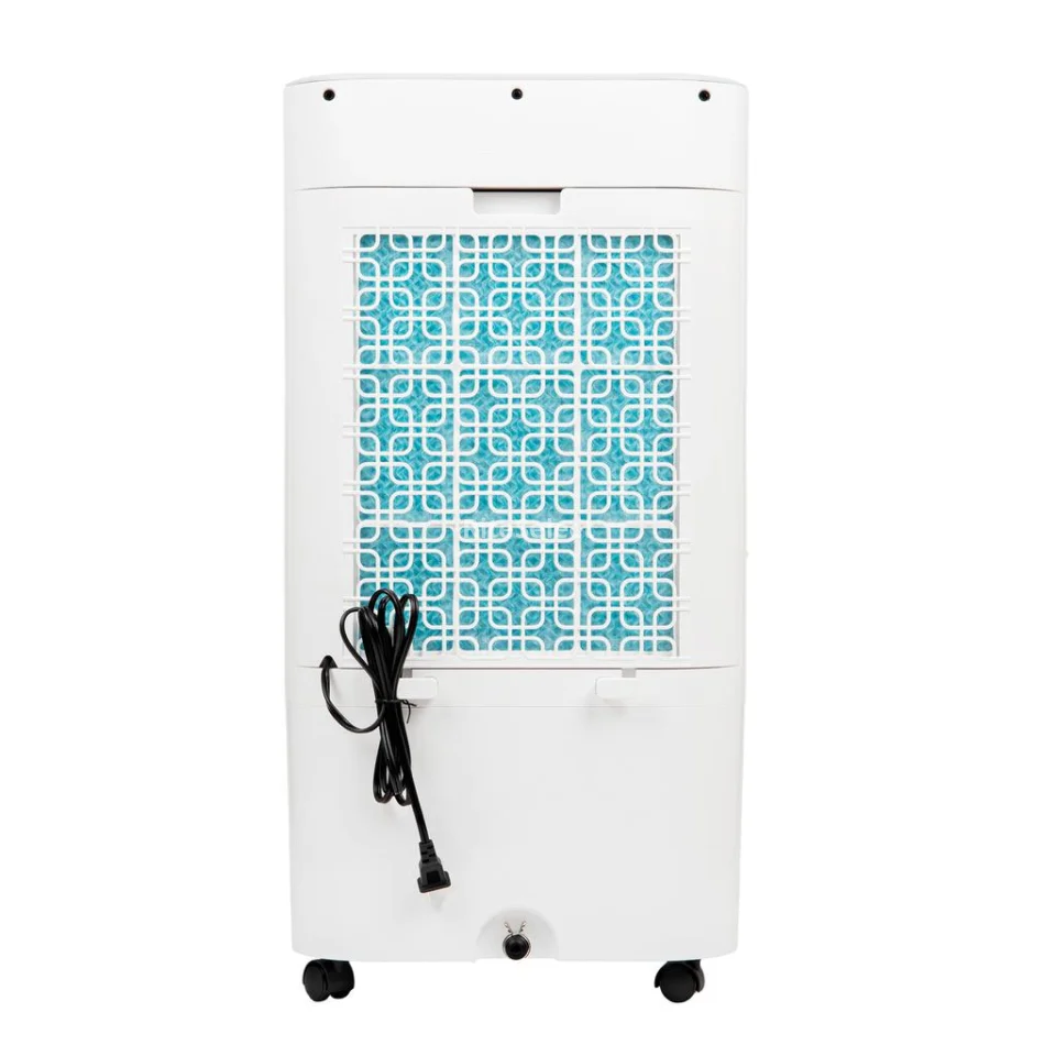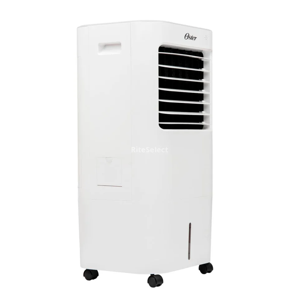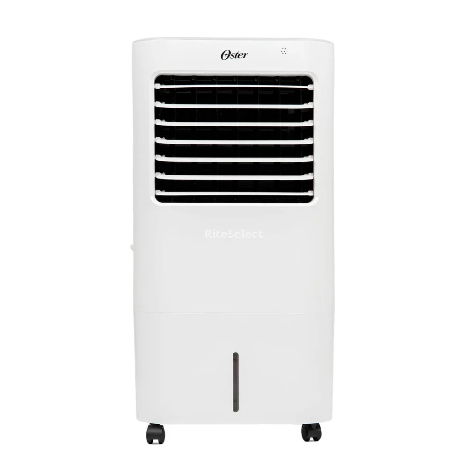 Oster 10 L Capacity Digital Air Cooler | Model: OS-AWMC10LW | Net Weight: 8 kg / 17.6 lb | 3 Speed and Fan | Sound Pressure Level: 67 dba | Control Type: Digital | Voltage: 110 V / 60 Hz | Product Dimensions: L: 38 cm x W: 33.1 cm x H: 74.8 cm / L: 14.9" x W: 13" x H: 29.4" | Package Dimensions: L: 44.6 cm x W: 37.8 cm x H: 84.2 cm / L: 17.5" x W: 14.8" x H: 33.1" | Made in China.