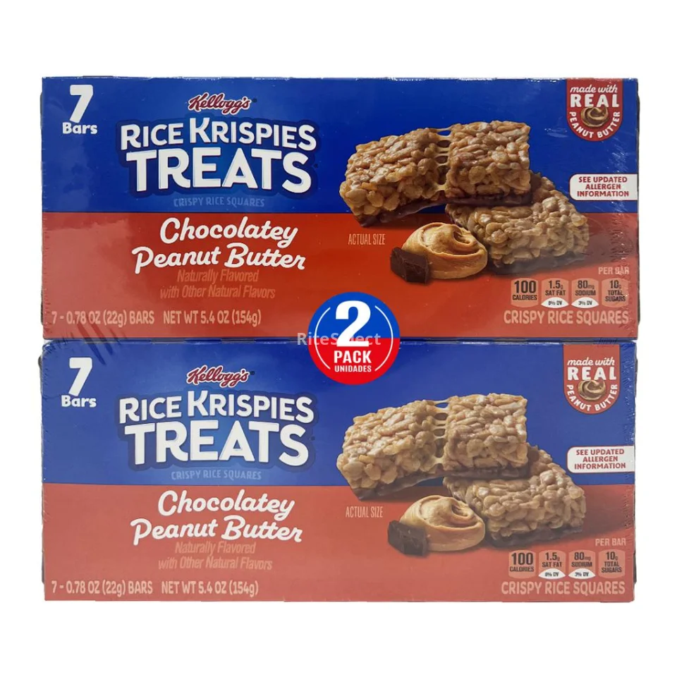 A perfect balance between crispy and creamy is hidden in each bite of these irresistible puffed rice bars covered with the most delicious combination of chocolate and peanut butter. Rice Krispies Treats has taken the classic snack to another level, fusing the lightness and characteristic crispness of its bars with the velvety softness of a layer of real peanut butter and the deep sweetness of chocolate.