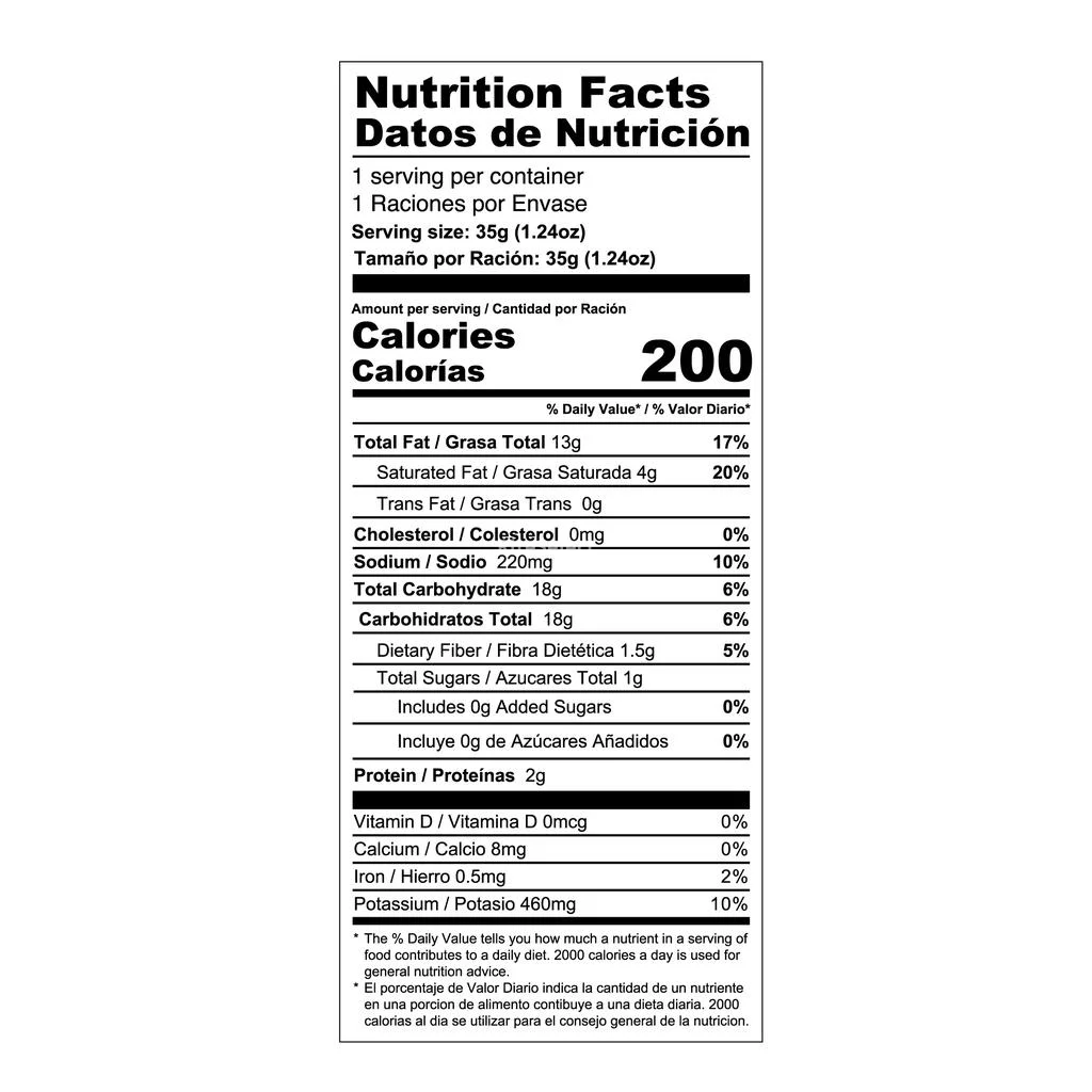 • The unmistakable sour cream and onion flavor fuses with a wavy and crispy texture that intensifies each bite, offering a more complete and tasty experience. These potato chips stand out for their balance between creamy notes and a slightly acidic touch, achieving a classic profile that is irresistible at gatherings, snacks, or craving moments. Their ribbed slicing not only provides greater firmness, but also allows the seasoning to adhere better, guaranteeing a consistent and enveloping flavor in each serving. A practical option to share or enjoy individually with the authentic character that distinguishes this kind of snack.